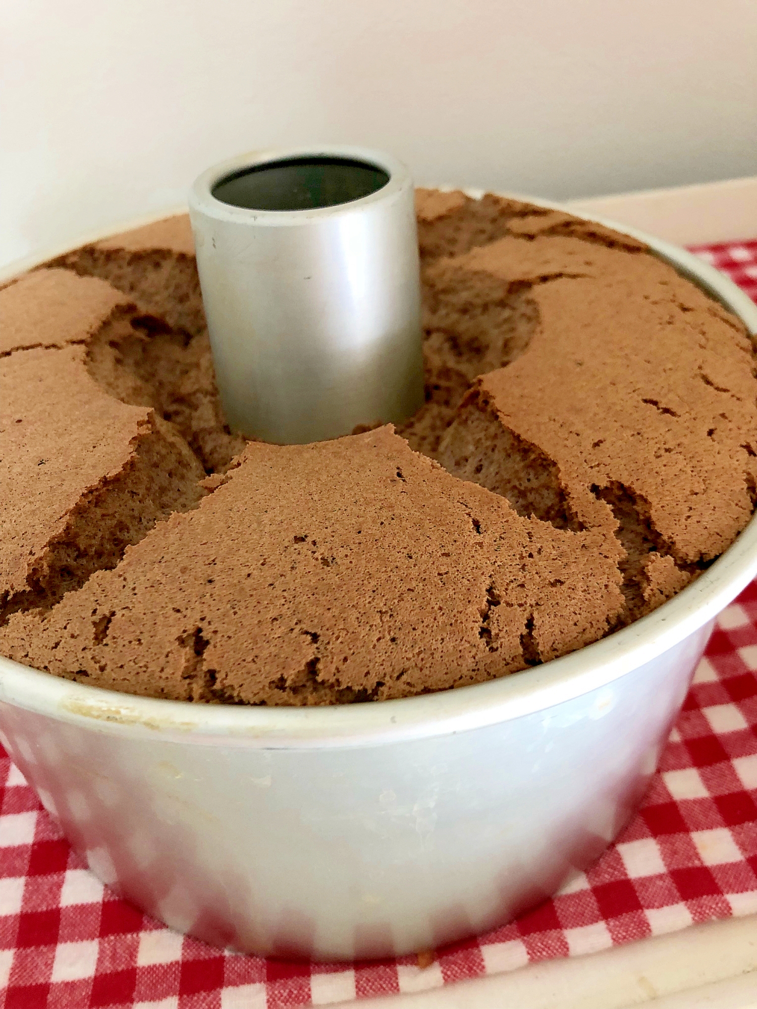 冷凍卵白で焼く トールシフォン型のチョコレートシフォンケーキ 小麦粉だいすき